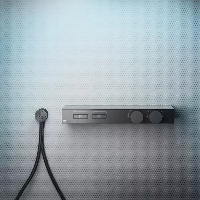 Gessi Hi-Fi Термостат для душа, с вкл. до 2 источников одновременно, с полкой из черного мат. стекла, внешняя часть, цвет: Black Metal Brushed PVD