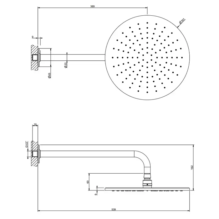 GESSI INCISO Душевая головка настенная, шарнирная на 1/2”, Ø30см, цвет Warm Bronze Br. PVD