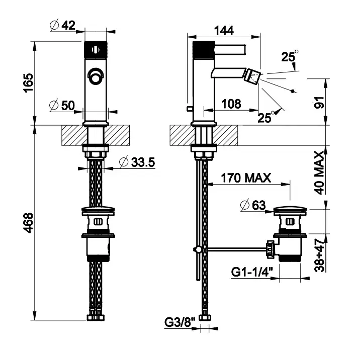 Gessi Inciso Смеситель для биде, 1 отв., с донным клапаном, цвет: Brushed brass pvd