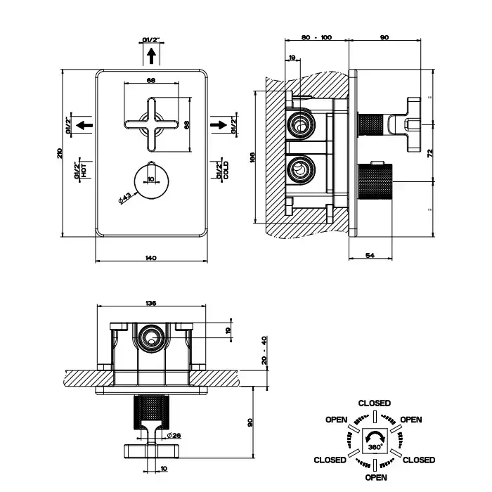 Gessi Inciso Смеситель для душа с переключателем на 3 выхода, термостатический, внешняя часть, цвет: хром