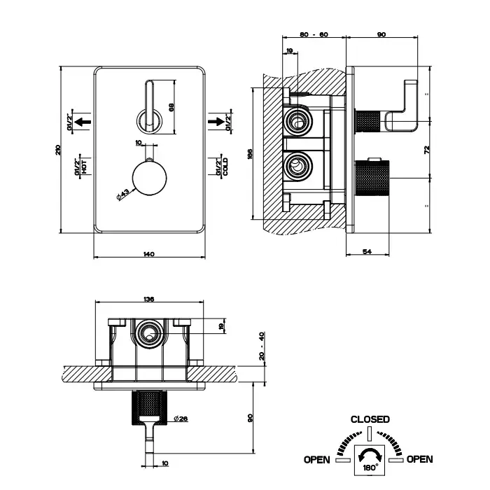 Gessi Inciso Смеситель для душа, термостатический, на 2 источника, внешняя часть, цвет: золото