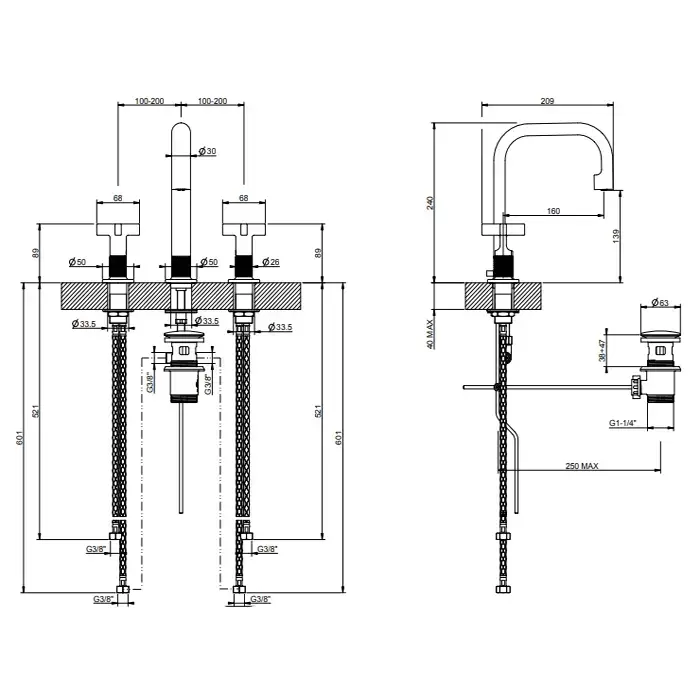 Gessi Inciso Смеситель для раковины, 3 отв., цвет: хром
