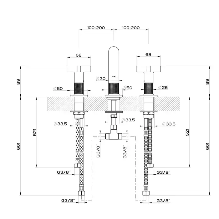 Gessi Inciso+ Смеситель для раковины на 3 отверстия, без донного клапана. цвет: black XL