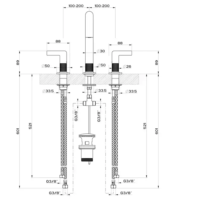 Gessi Inciso Смеситель для раковины на 3 отверстия с донным клапаном, излив 160мм, h=240мм Цвет: finox