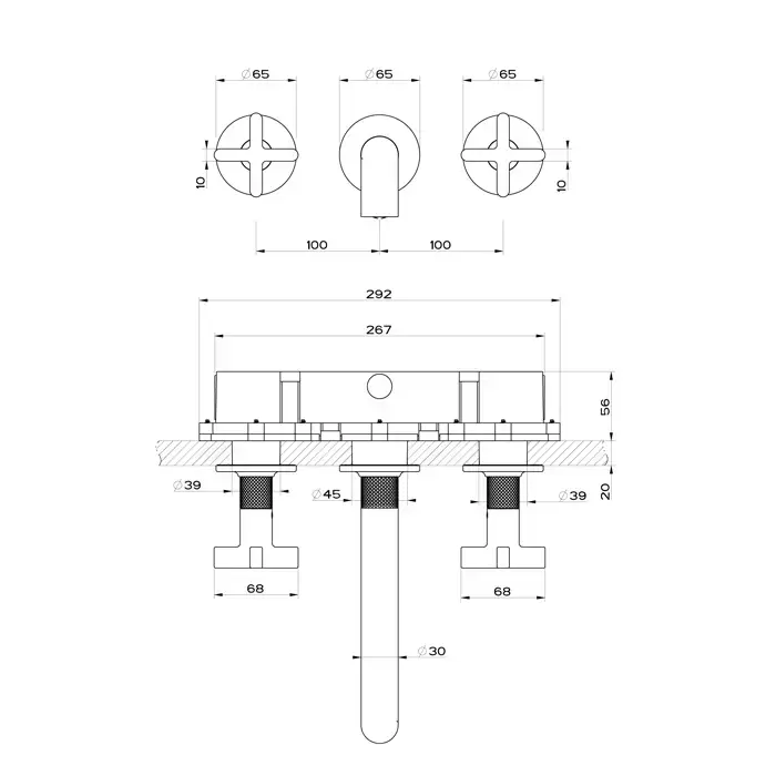 Gessi Inciso Встраиваемый смеситель для раковины на 3 отверстия с изливом 210-190мм, внешняя часть, цвет: finox