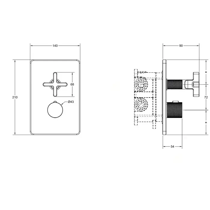 Gessi Inciso+ Встраиваемый термостатический смеситель на 1 источника, резьба 1/2", внешняя часть, цвет: finox