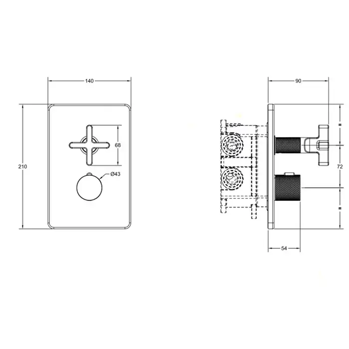 Gessi Inciso+ Встраиваемый термостатический смеситель на 2 источника, резьба 1/2", внешняя часть, цвет: finox