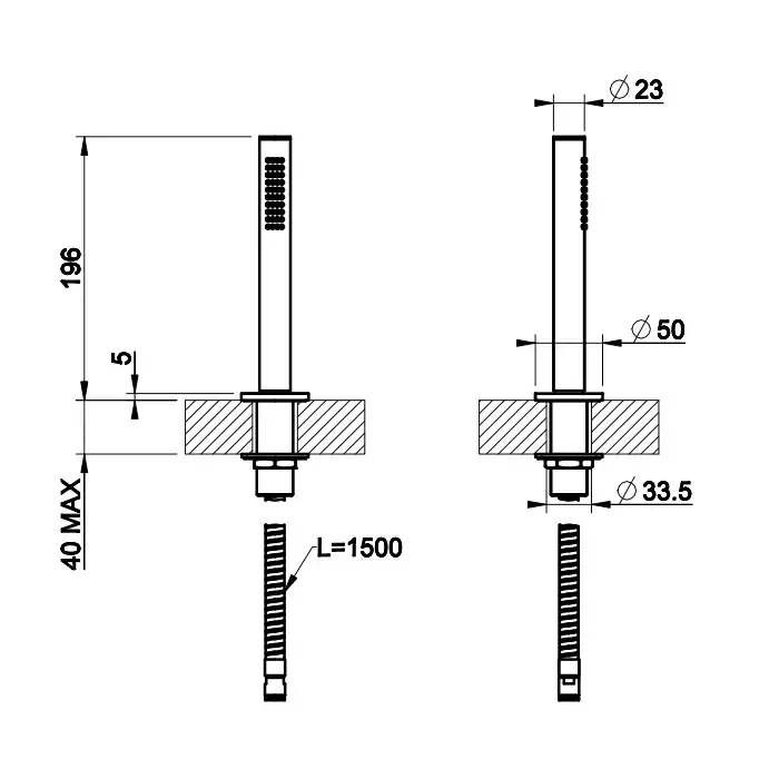 Gessi Ingranaggio Душевой комплект на борт ванны, состоящий из держателя, шланга 1,50 м и лейки, цвет: хром