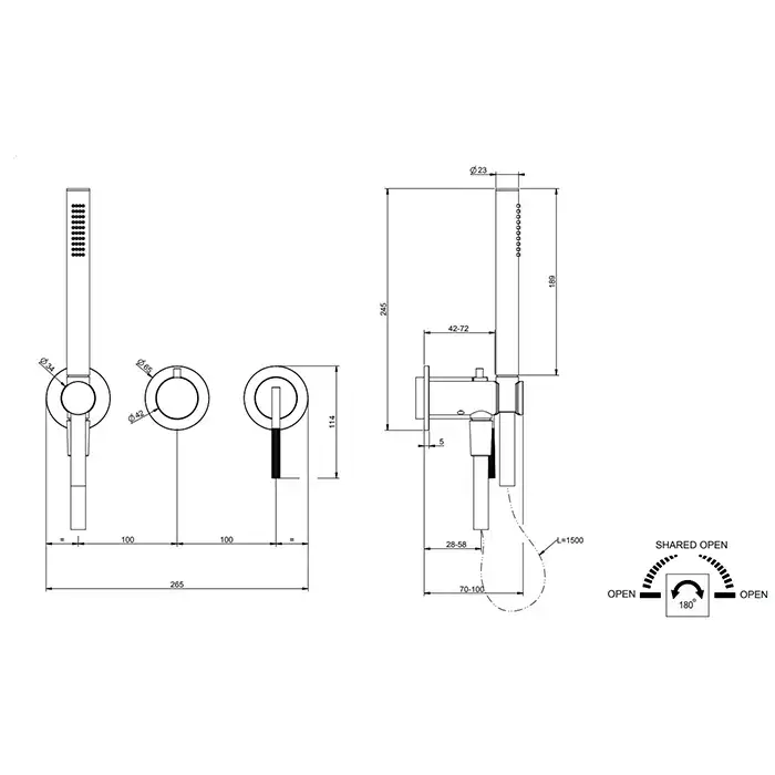 Gessi Ingranaggio Смеситель для душа, встраиваемый, с переключателем, держатель с подводом воды, ручн душ, шланг 150см, цвет: Black Metal PVD
