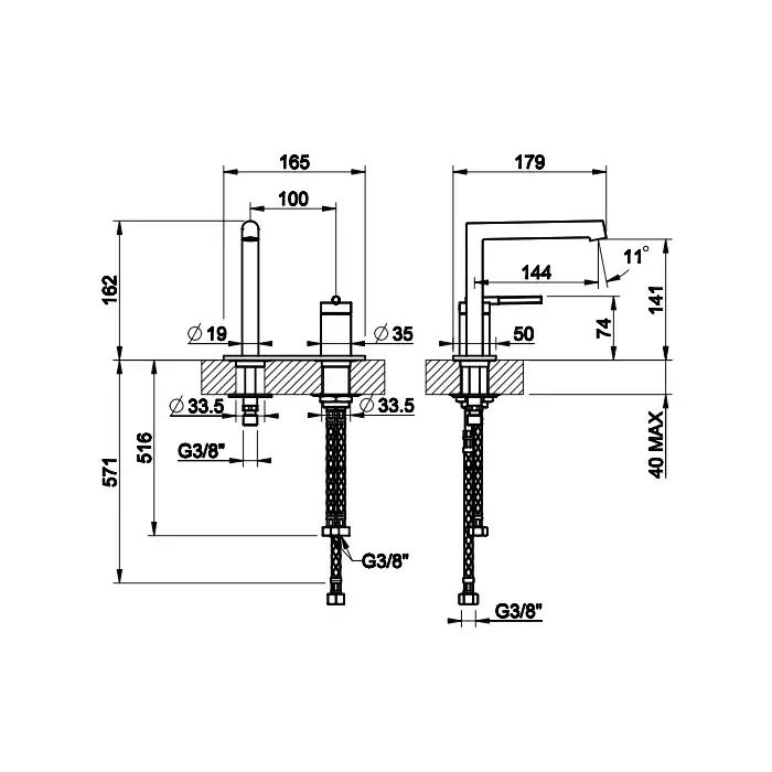 Gessi Ingranaggio Смеситель для раковины без донного клапана, с соединительными шлангами, цвет: хром