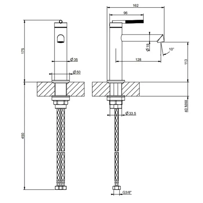 Gessi Ingranaggio Смеситель для раковины, на 1 отв., без донного клапана, с соединительными шлангами, цвет: Black XL