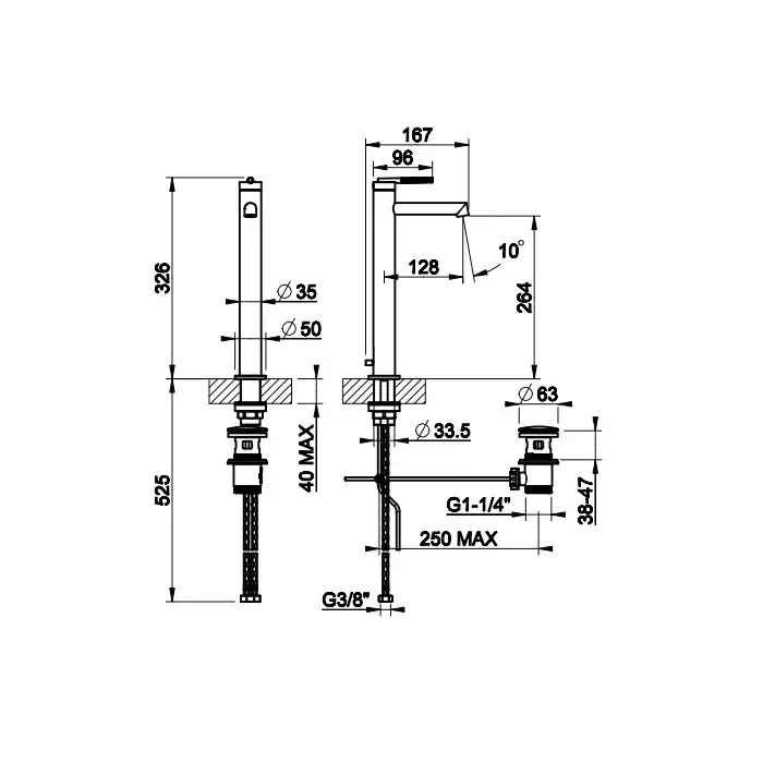 Gessi Ingranaggio Смеситель для раковины высокий, излив короткий. С донным клапаном и соединительными шлангами, цвет: хром