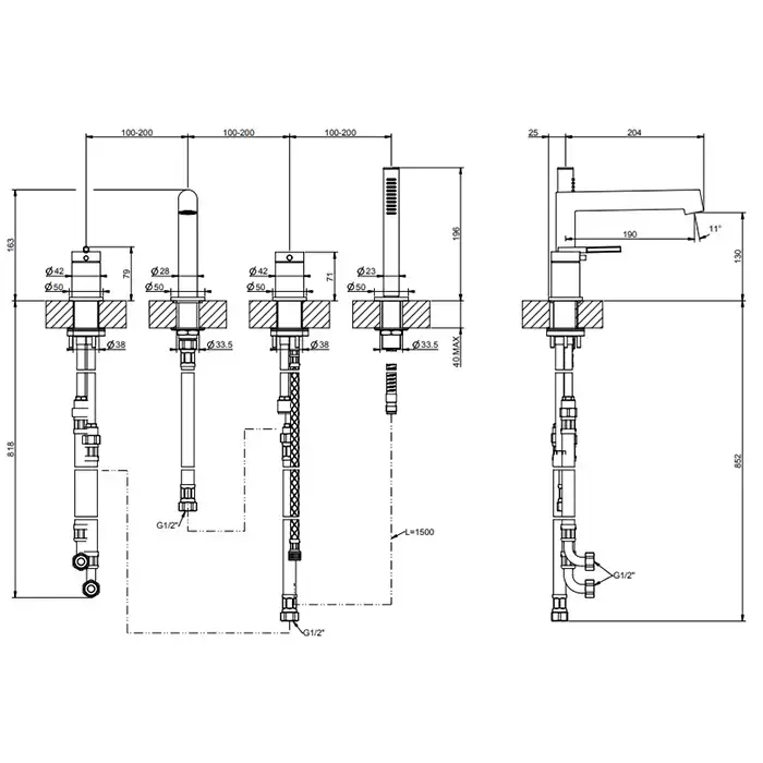 Gessi Ingranaggio Смеситель на борт ванны, на 4 отв., с ручным душем, цвет: Black Metal Brushed PVD