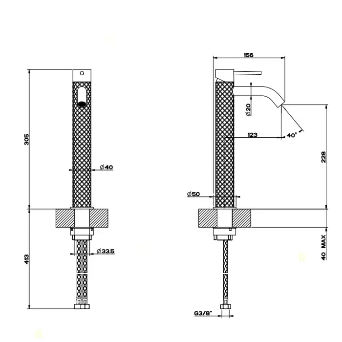 Gessi Intreccio Смеситель для раковины высокий, без донного клапана, цвет: шлифованная сталь