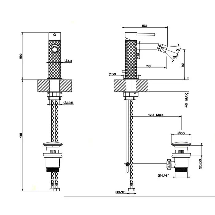 Gessi Intreccio Смеситель однорычажный для биде с донным клапаном, цвет: шлифованная сталь