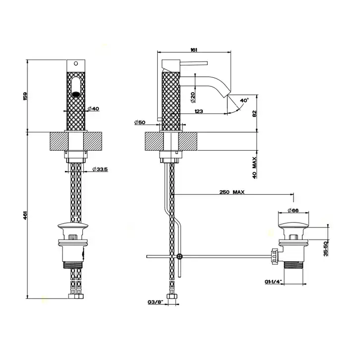 Gessi Intreccio Смеситель однорычажный с донным клапаном, цвет: шлифованная сталь