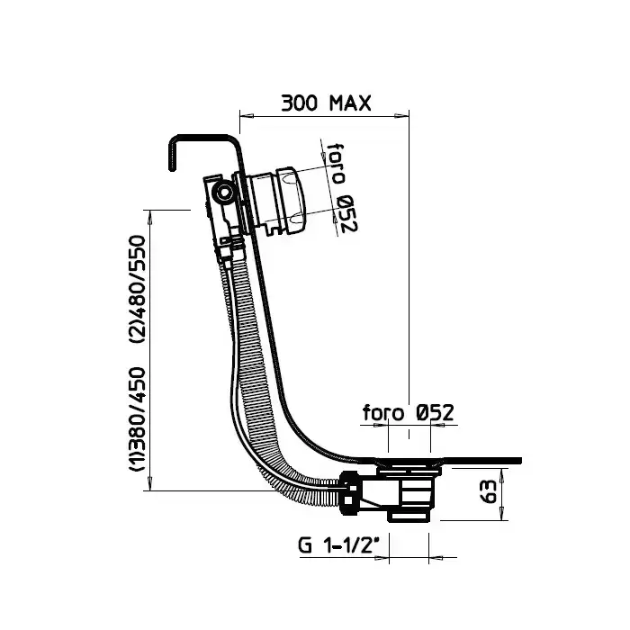 Gessi Колонна сливная для ванны полиэтиленовая для наполнения ванны через перелив. Длина кабеля управления 70 см, цвет: хром