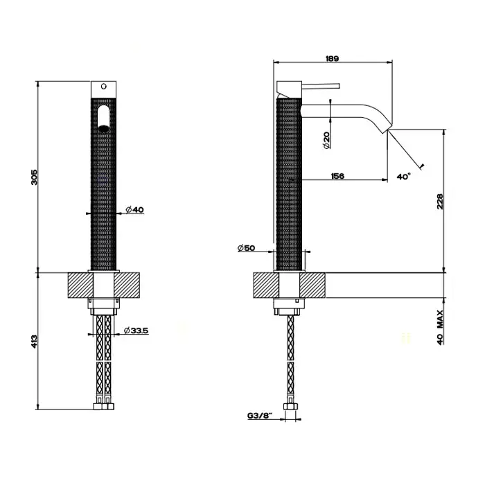 Gessi Meccanica Смеситель для раковины высокий, без донного клапана, цвет: шлифованная сталь