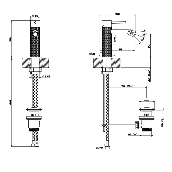 Gessi Meccanica Смеситель однорычажный для биде с донным клапаном, цвет: шлифованная сталь