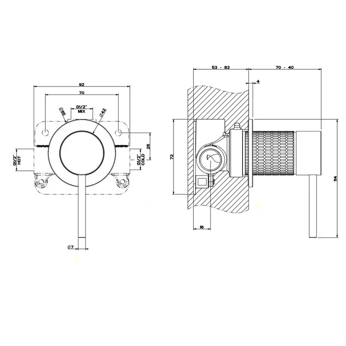 Gessi Meccanica Встраиваемый однорычажный смеситель, картридж Ø35мм,одна позиция, внешняя часть, цвет: шлифованная сталь