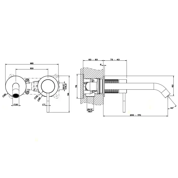 Gessi Meccanica Встраиваемый однорычажный смеситель с изливом, без донного клапана, внешняя часть, цвет: шлифованная сталь