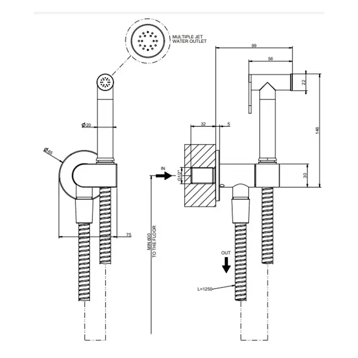Gessi Origini Гигиенический душ, шланг 125см, цвет: Black XL