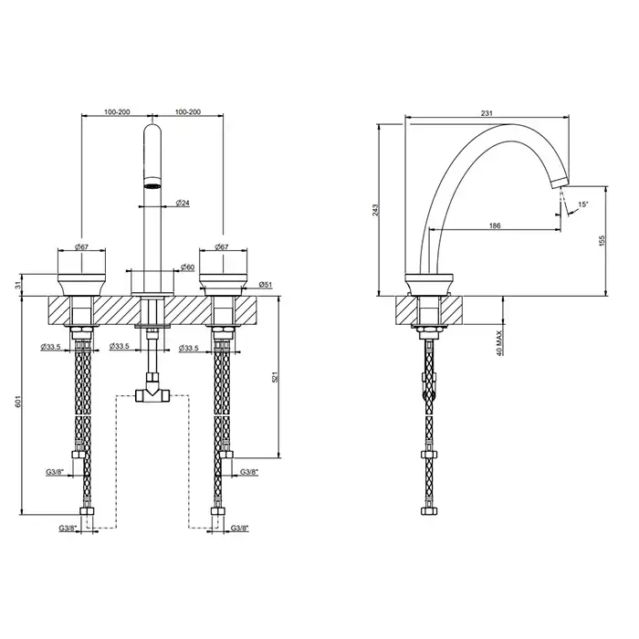 GESSI Origini Смеситель для раковины, на 3 отв., в компл с отд вставкой, цвет: Copper Brushed PVD