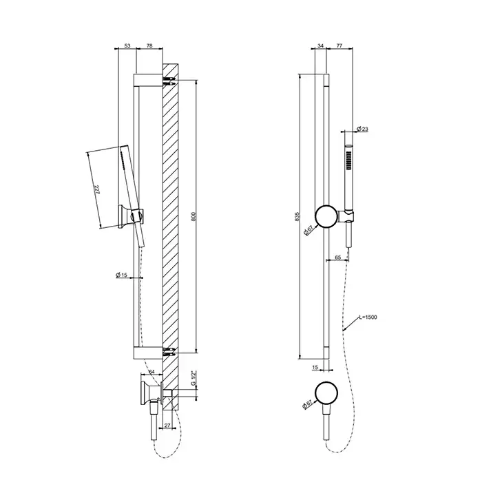 Gessi Origini Штанга в комплекте с душевой лейкой, шланг 1,50 м и вывод воды. в компл с отд вставкой, цвет: Finox Brushed Nickel