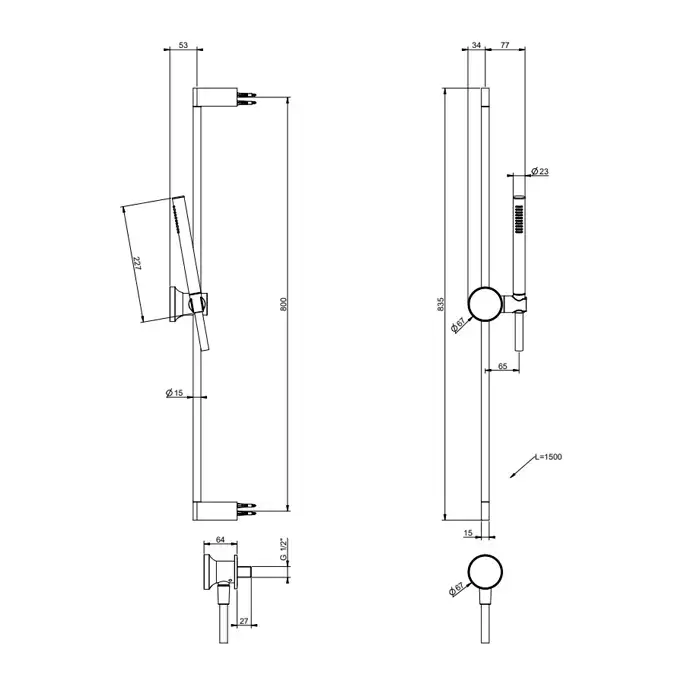 Gessi Origini Штанга в комплекте с душевой лейкой, шланг 150см и вывод воды, с вставкой, цвет: Copper Brushed PVD