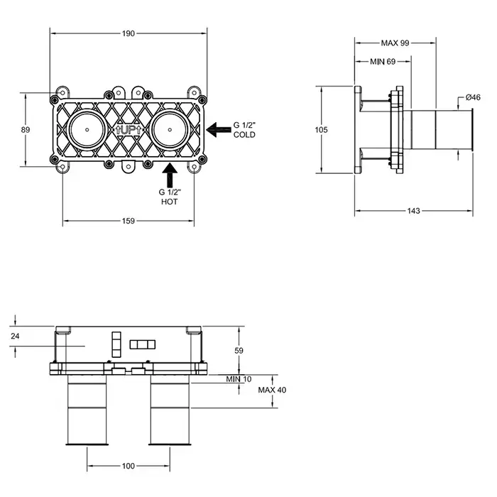 Gessi PARTI INCASSO Встраиваемая часть для смесителя с изливом, цвет: steel brushed