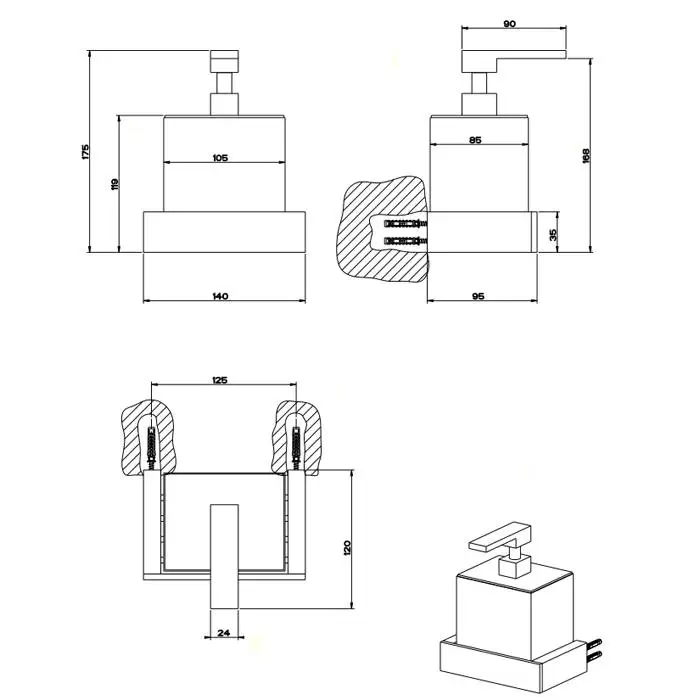 Gessi Rettangolo Дозатор для жидкого мыла подвесной, цвет: хром/черный