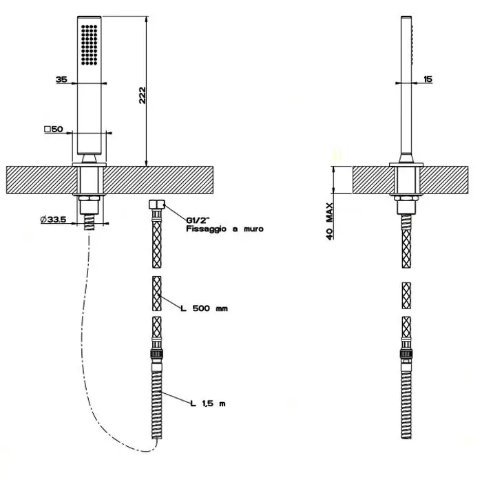 Gessi Rettangolo Душевая лейка выдвигающаяся, с держателем, цвет: хром