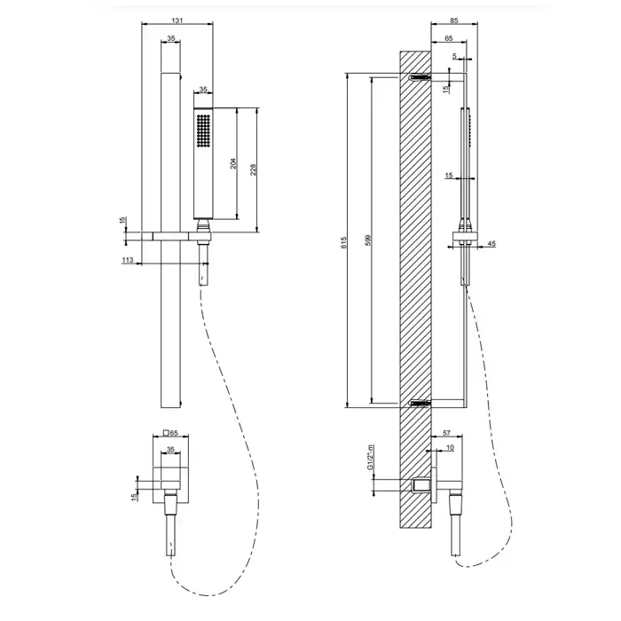 Gessi Rettangolo Душевая стойка с ручным душем и выводом воды из стены, цвет: медь
