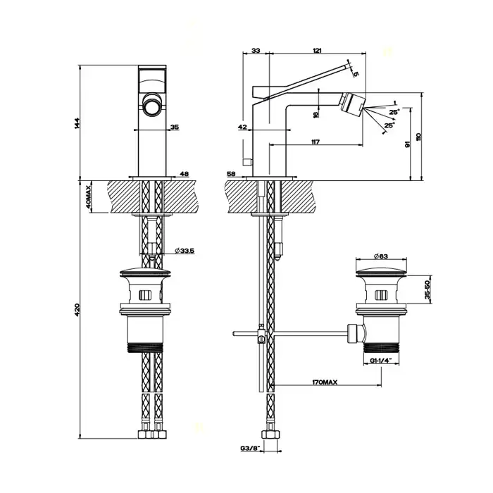 Gessi Rettangolo K Смеситель для биде на 1 отверстие, с донным клапаном, цвет: black XL