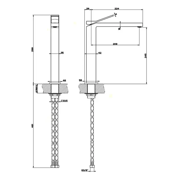 Gessi Rettangolo K Смеситель для раковины на 1 отверстие, излив 213мм, цвет: black XL