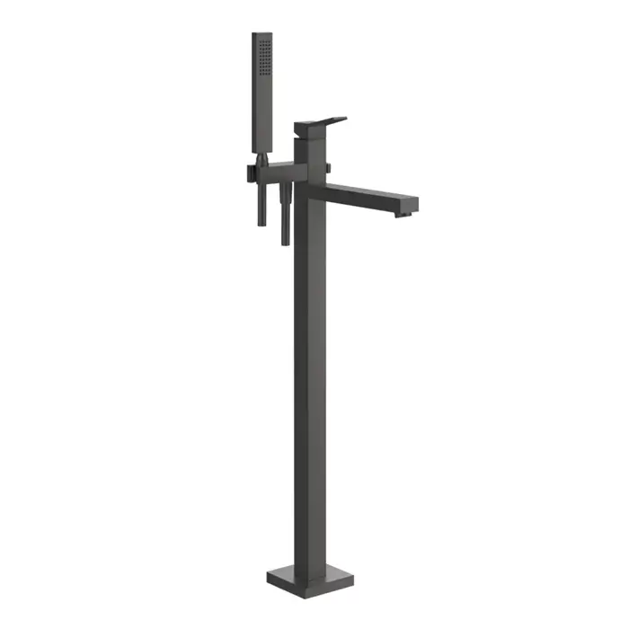 Gessi Rettangolo K Смеситель для ванны, напольный, с ручным душем, и шлангом 150см., внешняя часть, цвет: Black Metal Brushed PVD