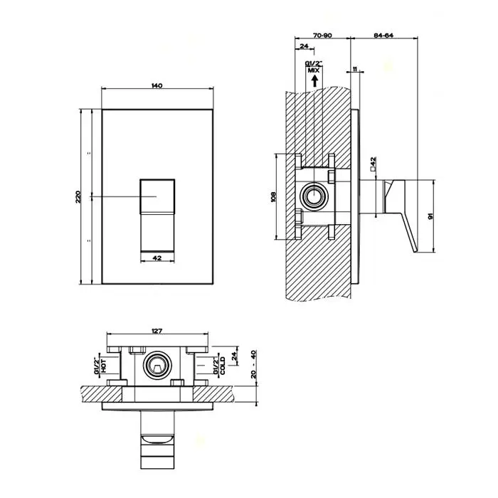 Gessi Rettangolo K Встраиваемый однорычажный смеситель для душа, внешняя часть, цвет: хром