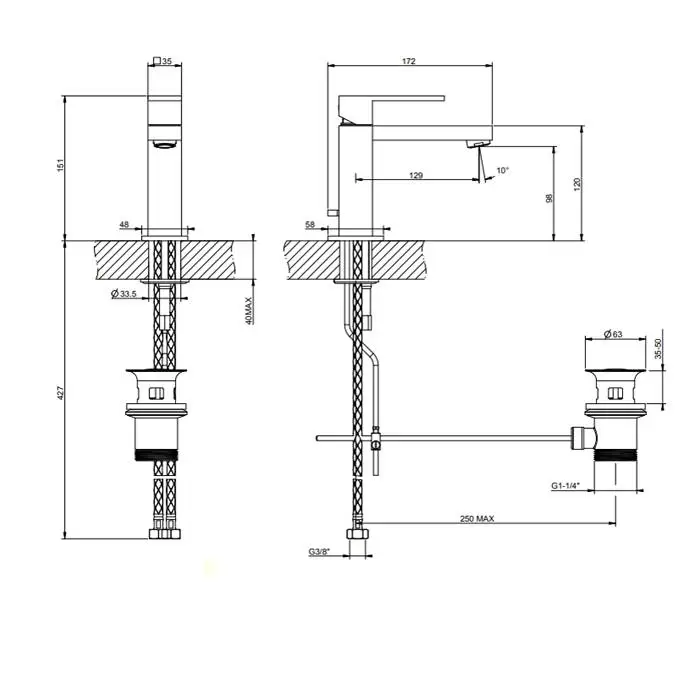Gessi Rettangolo Смеситель для раковины на 1 отверстие с донным клапаном, цвет: хром