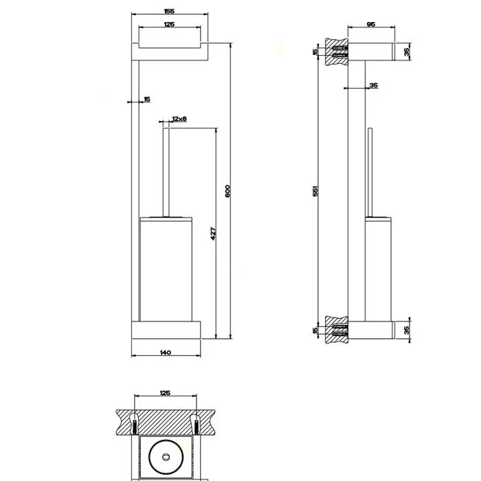 Gessi Rettangolo Стойка 55.1см., с держателем для туалетной бумаги и ершиком, подвесная, цвет: хром/белый