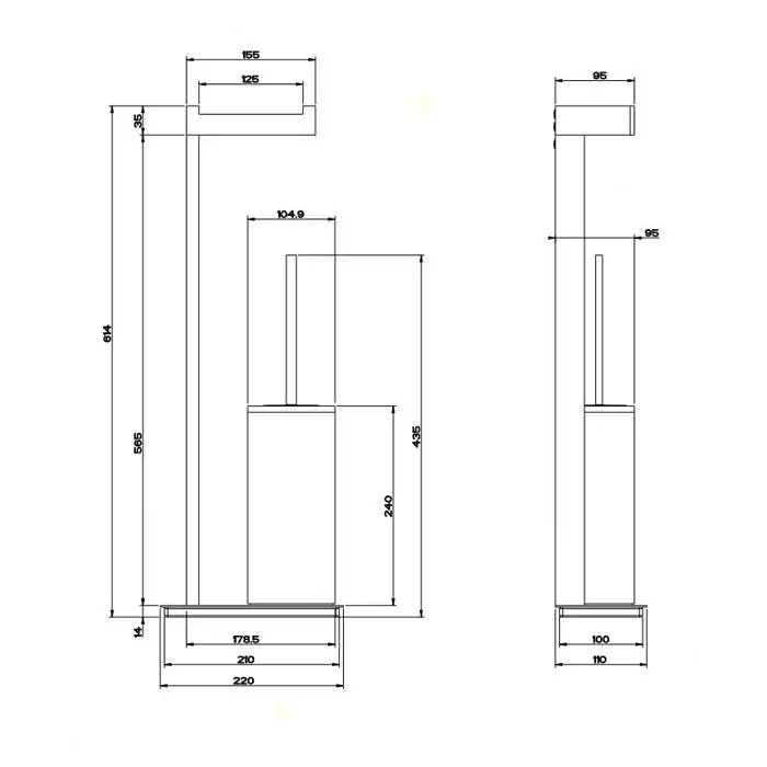 Gessi Rettangolo Стойка с держателем 61.4см., для туалетной бумаги и ершиком, напольная, цвет: хром/черный