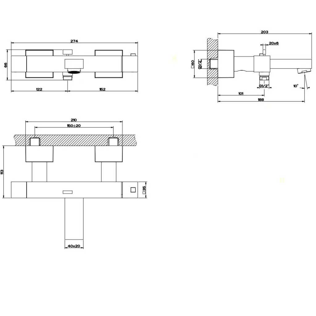 Gessi Rettangolo Термостатический смеситель для ванны с автоматическим переключателем ванна/душ, цвет: хром