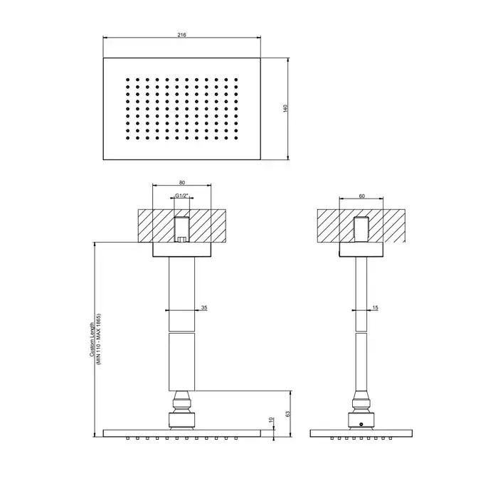 Gessi Rettangolo Верхний душ для потолочного крепления 216x140мм, высота от 115 до 1865мм, цвет: Black XL