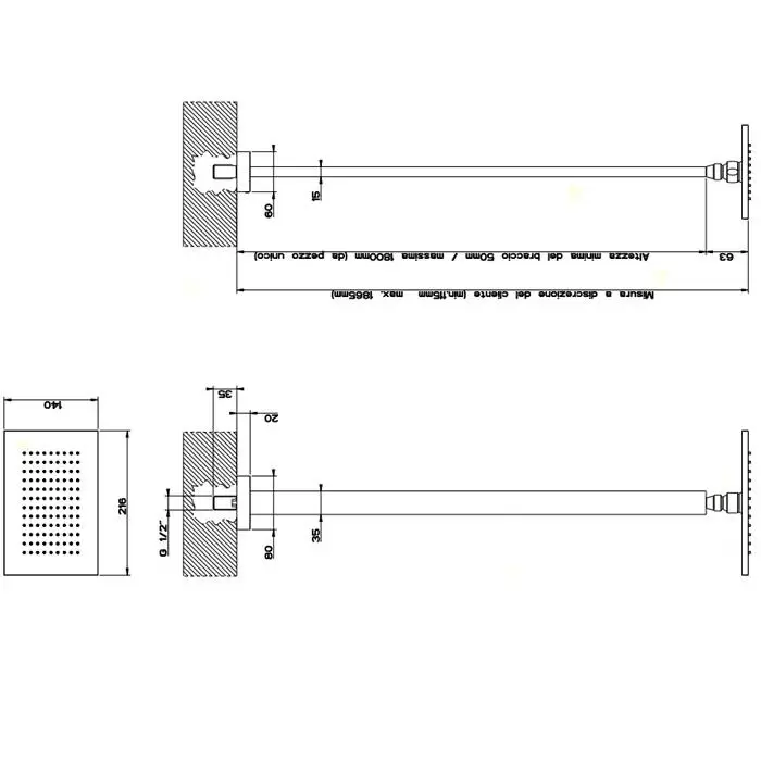Gessi Rettangolo Верхний душ для потолочного крепления 216x140мм, высота от 115 до 1865мм, цвет: хром