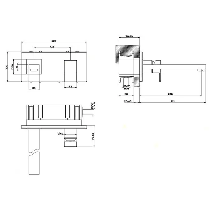 Gessi Rettangolo Встраиваемый однорычажный смеситель, излив 206мм, внешние части, цвет: хром