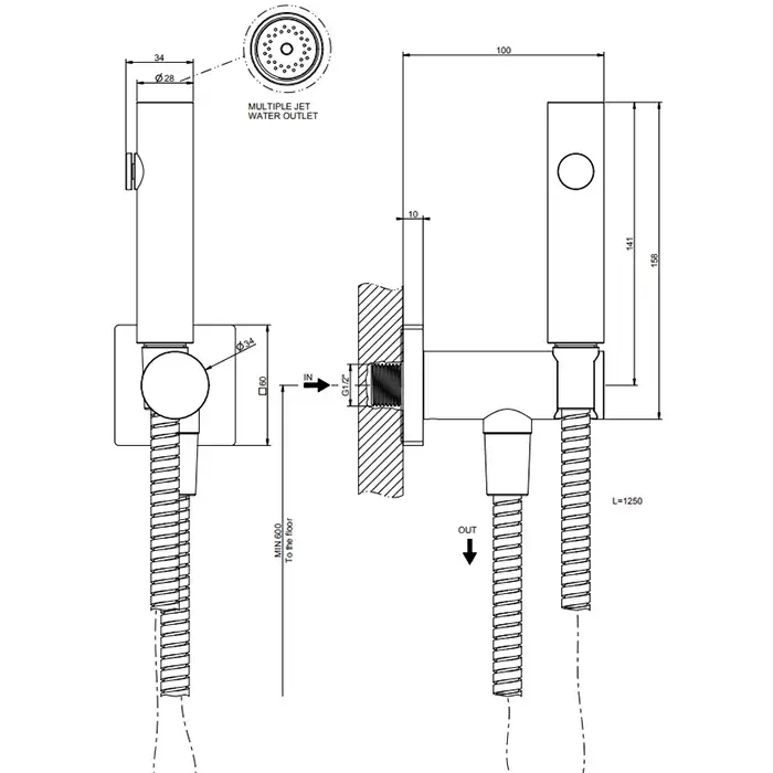 Gessi Rilievo Гигиенический душ настенный на 1/2", цвет: black XL