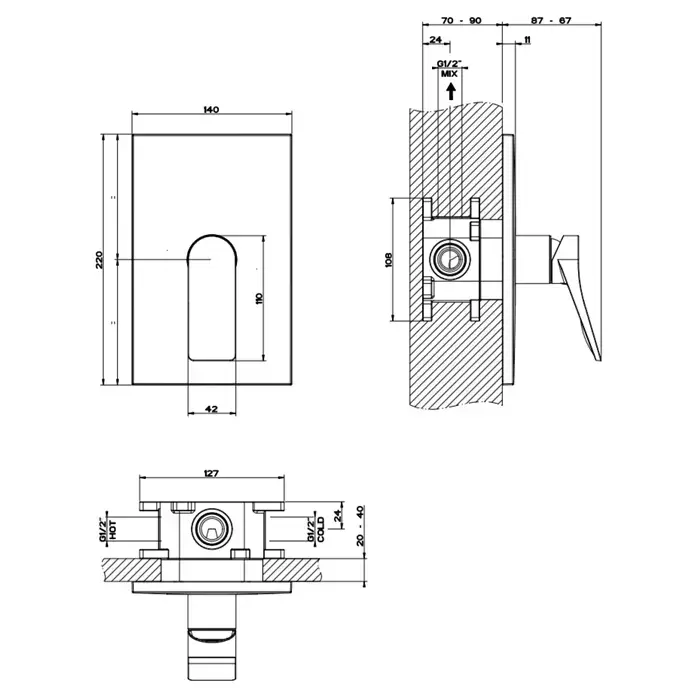 Gessi Rilievo Rilievo Встраиваемый смеситель для душа на 1 источник, внешняя часть, цвет: хром