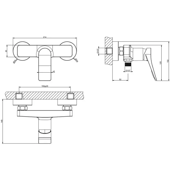 Gessi Rilievo Смеситель для душа, настенный на 2 отв., цвет: хром