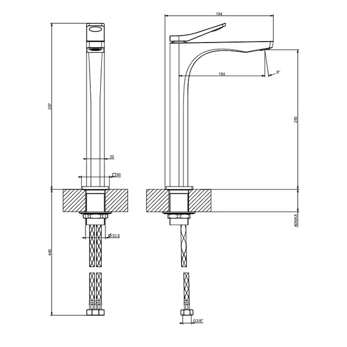 Gessi Rilievo Смеситель для раковины на 1 отв. без донного клапана h=297мм, излив 154мм , цвет: black XL
