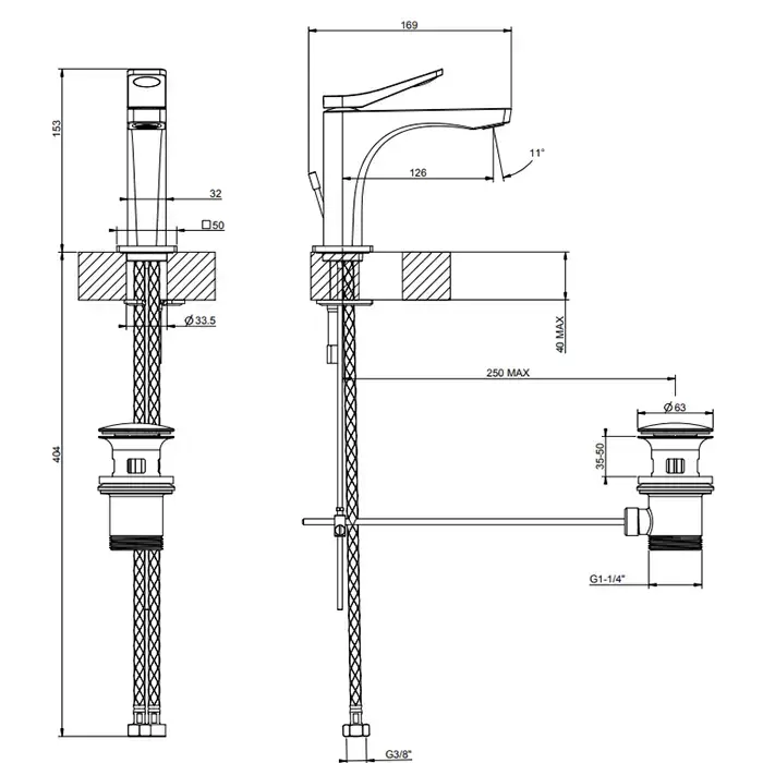 Gessi Rilievo Смеситель для раковины на 1 отв. с донным клапаном h=153мм, излив 126мм , цвет: black XL