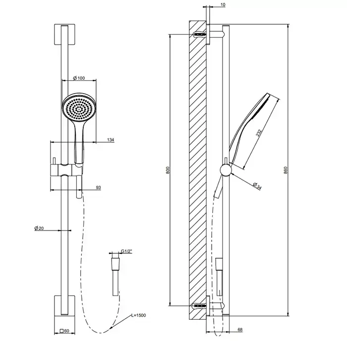 Gessi Rilievo Штанга в комплекте с душевой лейкой, шланг 1,50 м., цвет: nero XL